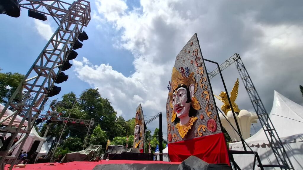 Singaraja, koranbuleleng.com| Dua pasang ornamen topeng raksasa menghiasi panggung utama Buleleng Festival tahun 2025 ini. Festival ini sempat vakum beberapa tahun karena pandemi Covid19 dan keterbatasan anggaran, kini muncul dengan aura lain. Topeng jadi isu utama yang cukup menghentak pesta rakyat yang mengambil lokasi di titik 0 Kota Singaraja.
