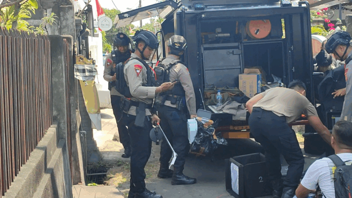 Situasi mencekam sempat terjadi di depan rumah warga di Gang 8, Jalan Yudistira, Kelurahan Kendran. Polisi memasang garis pembatas di sekitar lokasi, sementara sebuah bungkusan hitam tergeletak di depan rumah membuat warga panik.