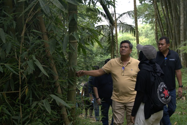 Rombongan kemudian menelusuri hutan bambu bersama tim YBLL, perwakilan KTH Wana Kerta Lestari, dan Diageo, untuk melihat langsung jenis-jenis bambu yang telah dikembangkan serta meninjau lokasi pembibitan dan penanaman.