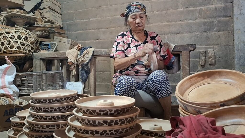 Di sudut lain, pekerja lain tampak menempelkan hiasan batok kelapa di permukaan dulang yang sudah dibentuk. Setelah proses pemasangan selesai, dulang setengah jadi itu dihaluskan dengan amplas di lantai dua. Hasilnya kemudian difinishing oleh pekerja lain untuk mendapatkan tampilan mengilap dan elegan. Mertasariada tampak mengawasi proses itu dengan cermat, memastikan kualitas setiap produk terjaga.