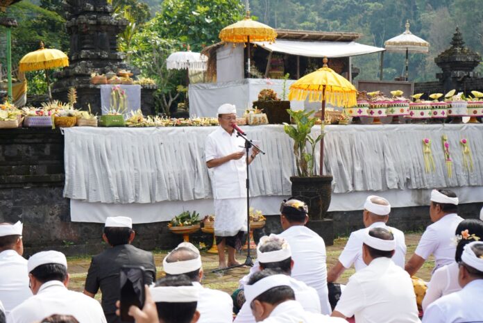 Dalam suasana penuh khidmat dan khusuk, Gubernur Koster bersama masyarakat memanjatkan doa dan puji syukur ke hadapan Ida Sanghyang Widhi Wasa, Ida Bhatara serta para leluhur, sebagai ungkapan terima kasih atas limpahan anugerah alam semesta.