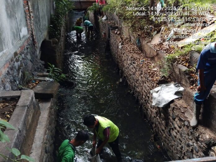 Singaraja, koranbuleleng.com | Pemerintah Kabupaten Buleleng melalui Dinas Pekerjaan Umum dan Tata Ruang (PUTR) mengambil langkah cepat menghadapi musim hujan. Dinas PUTR menyiagakan 100 petugas drainase yang bertugas melakukan pembersihan saluran dan pengawasan aliran air sebelum, saat, hingga setelah hujan turun. Langkah ini disusun setelah pemetaan menunjukkan lima kawasan di seputaran Kota Singaraja berada dalam kategori rawan banjir.