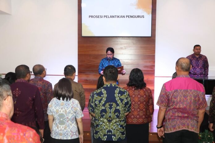 Menutup sambutannya, ia menyampaikan apresiasi kepada seluruh pihak yang hadir serta mengucapkan selamat bertugas kepada pengurus baru. “Semoga tugas mulia ini dapat dijalankan dengan baik, penuh tanggung jawab, dan membawa berkat bagi umat serta masyarakat Bali,” ujarnya, seraya memberikan ucapan selamat kepada Ketua Umum I Made Budiarsa, M.Si., dan jajaran pengurus yang akan memimpin hingga 2029.