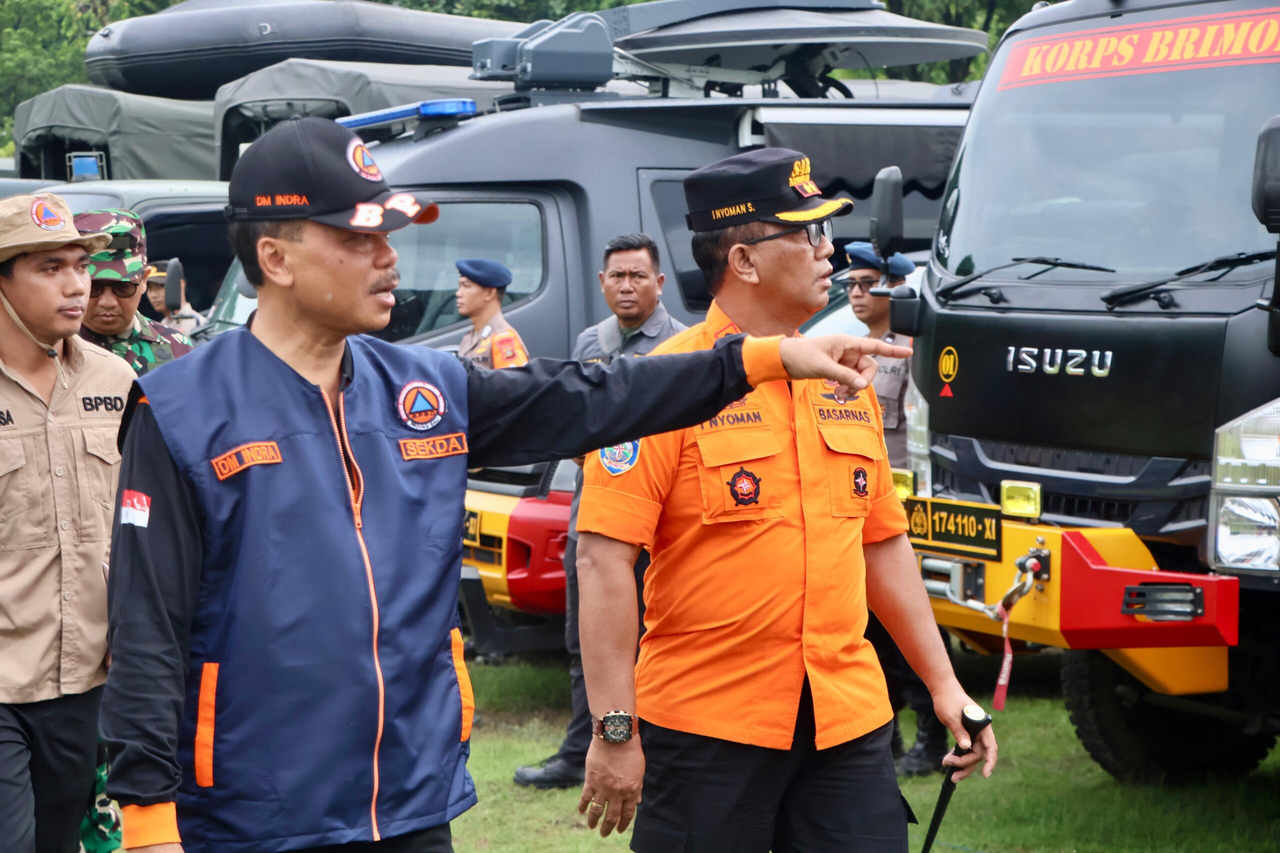 Sebelum apel dimulai, Dewa Made Indra meninjau langsung kesiapan personel, peralatan, serta kendaraan operasional dari berbagai instansi. Ia mengapresiasi kesiapan tersebut. “Dalam urusan bencana, kita harus selalu berharap yang terbaik, tetapi siap menghadapi yang terburuk,” ujarnya.