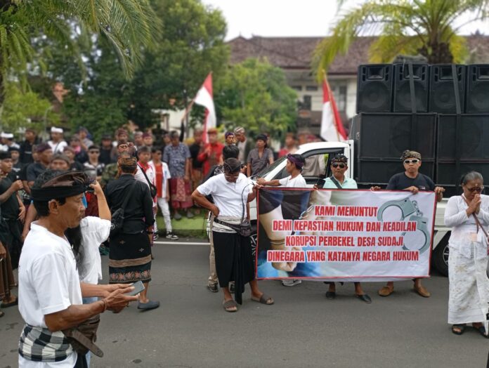 Di halaman Kantor Kejari Buleleng, warga menyuarakan aspirasi melalui sejumlah spanduk bernada tuntutan keras. Spanduk-spanduk itu di antaranya bertuliskan “Hanya Satu Permintaan Masyarakat Desa Sudaji, Segera Adili Kepala Desa Sudaji”, “Kajari Jangan Diam, Masyarakat Sudaji Menuntut Kebenaran, Keadilan, dan Kepastian Hukum”, serta “Kami Menuntut Demi Kepastian Hukum dan Keadilan Korupsi Perbekel Desa Sudaji di Negara Yang Katanya Negara Hukum”.